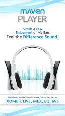 Tome un viaje musical con el Reproductor de Música MAVEN, y descubra sus fantásticas características de control y calidad de sonido inmejorable.Se proporciona todo el Maven 3D efecto de sonido envolvente que presenta un sonido dinámico y fantástico para los oyentes con letras sincronizadas en tiempo real.Incluso cuando se utilizan altavoces externos estéreo, multicanal virtual de efecto de sonido envolvente le ofrece altamente inmersivo entorno de escucha.MAVEN Solution (Audio Multiform virtualización y mejora de Nexus)1. XOME-iNo hay dolores de cabeza, ni oídos perjudicando sobre el uso de auriculares. El sonido sale de la cabeza y las orejas, por lo que crea una sensación de escuchar por los altavoces mientras utiliza los auriculares. Proporciona una calidad de sonido más rica y más limpio. Disfrutando de audio de alta fidelidad está disponible en dispositivos móviles con XOME-i.2. VIVIRRealización de 3 dimensiones de la presencia poderosa reverberación de sonido cuando se escucha con auriculares o altavoz, creando la sensación de apreciar la música en una sala de conciertos en vivo real.3. MEXReforzar la capacidad insuficiente de reproducción de sonidos de tono bajo y agudo, al tiempo que refuerza componente estéreo de sonido con el fin de ampliar aún más la anchura del sonido estéreo.4. ECUALIZADOREcualizador ajustará los niveles de cada banda de frecuencias de sonido, lo que permite al usuario ajustar la calidad de un tono a su gusto.Ésta es una solución con un tipo que el usuario puede ajustar los niveles de cada banda como banda 9, o en el tipo preestablecido o en UserSet tipo. Preestablecido Siempre se puede configurar con un máximo de 13 tipos, incluyendo voz, Jazz, Clásica, Rock, Dance, etc5. EVSAhora, usted puede disfrutar de un sonido envolvente virtual a través de los altavoces estéreo normales. Virtual Speaker 5.1 es una solución que permite la creación de más amplias y ricas imágenes de sonido estéreo en ese entorno. Las voces se colocan delante de ti y sonido ambiental aparece a su alrededor ... como una actuación en directo(Función Principal)1. MAVEN efectos (sonido 3D)A. XOME-i (externalización), Live (reverberación), Mex (Maestro), EVS (Virtual Speaker)B. 9 bandas de ecualizador gráfico, 13 por omisión preajustado (Voz, Jazz, Classic, etc), Custom preset (Guardar, Eliminar)2. Curva de respuesta de ecualizador3. Control de volumen (Volume Media, Volumen Pre, izquierda / derecha ajuste de canal)4. Muestra las letras en la etiqueta, incluyendo búsqueda de letras a través de plug-in ALSong5. Control de brillo6. Reproducir música por artits, álbumes, canciones, listas de reproducción, géneros y carpetas7. Canciones búsqueda8. Canciones Rescan9. Playlist gestión10. Seleccione múltiples, Borrar, Reproducir, Agregar a lista de reproducción11. Rebautizar12. Repetir y Suffle13. 3 tipos de widgets configurables (tamaño: 4x1, 4x2, 4x4)14. Leer Estado del teléfono(Para detener / reanudar la reproducción durante entrantes / salientes,Player requiere derechos de lectura sólo para leer el estado del teléfono)15. BlueTooth16. Bloqueo Screeen17. Sleep Timer18. Fade In / Out19. Tono20. Traslado de la tarjeta SD21. Ayuda de Juego, volumen, efecto